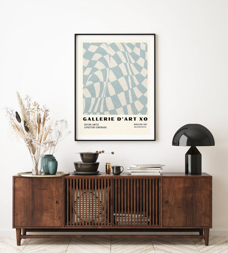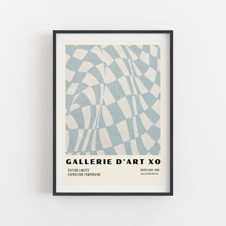 Funky Checkered Wavy Retro Digital Art Print, Cream and Blue, Printable Wall Art Trendy, Checkerboard Print, Checked Print, Checked Art, $12.00