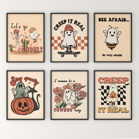 Retro halloween, creep it real, vintage ghost halloween printable, retro fall, fall printable, set of 10, print at home, autumn art prints, $12.50
