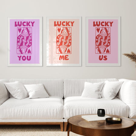 Retro trendy aesthetic wall art, digital download, wall decor, large printable art, queen of hearts, lucky you, set of 6, lucky you me us $12.50