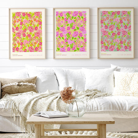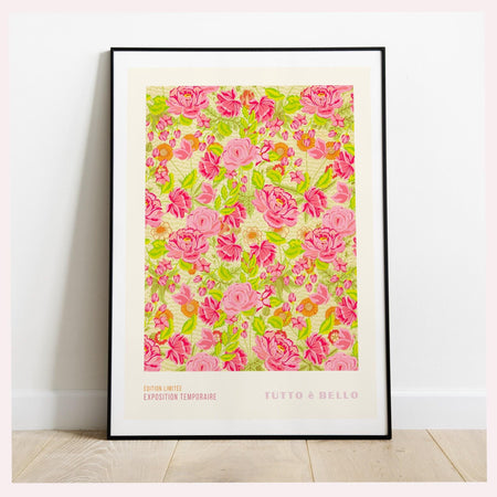 La dolce vita, liberty print digital download, 50s style poster, 60s flower print, pink orange decor, exhibition print, pink printable art $15.00