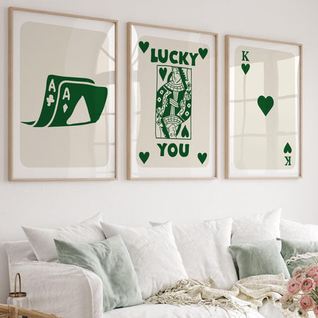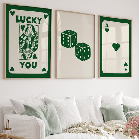 Trendy Retro Wall Art Set Of 9, Retro Trendy Minimalist Print Green and Beige Print, Lucky You Poster, Trendy Wall Art, Funny Art, Digital, $10.50