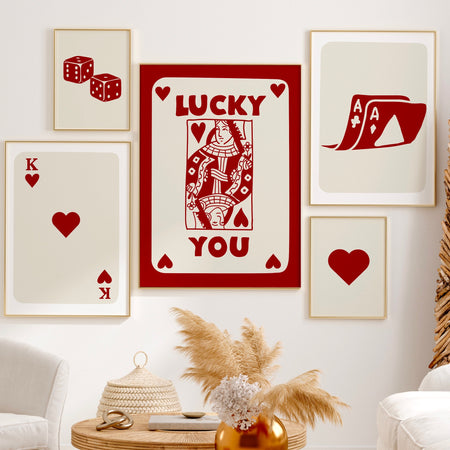 Trendy Retro Wall Art Set of 12,Retro Trendy Aesthetic Red Print,Lucky You Poster, Print,Trendy Wall Art,Funny Art, Minimalist, Digital Art $15.50