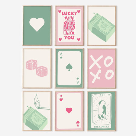 Trendy retro wall art set of 20 , retro trendy minimalist print pink and green poster lucky you print, trendy wall decor, funny art, digital $15.50