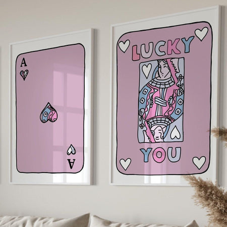 Trendy retro wall art set of 2,retro trendy aesthetic print,lucky you poster,pink print,trendy wall art,funny art, minimalist, digital art $15.00