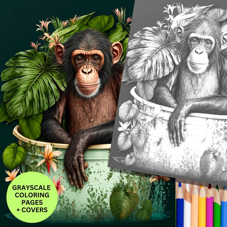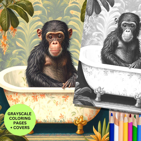 Safari animal coloring page, funny monkey printable adult coloring page kid coloring digital download grayscale coloring instant download $10.00