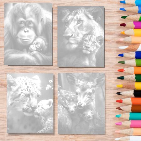 Mother love animals | printable adult grayscale colouring book pages | set of 20 printable coloring in pages instant digital download pdf $15.00