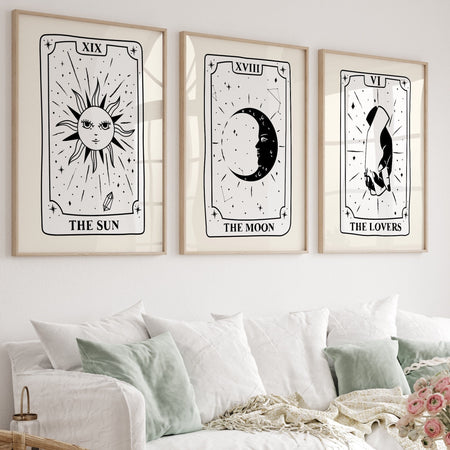 Retro Wall Art Set in Black White and Beige, Trendy Aesthetic Print Celestial tarot deck, Minimalist Poster,Trendy Wall Art Digital Download $9.00