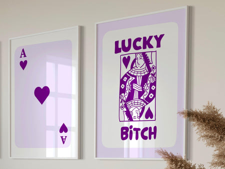 Trendy retro wall art set of 2 retro trendy aesthetic funny print lucky you poster purple print trendy wall art fun minimalist digital art $15.00