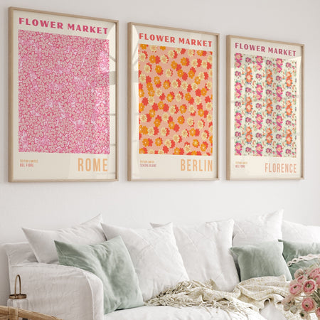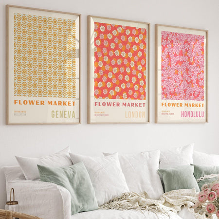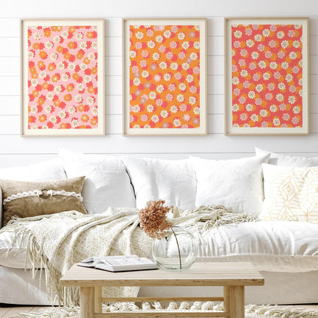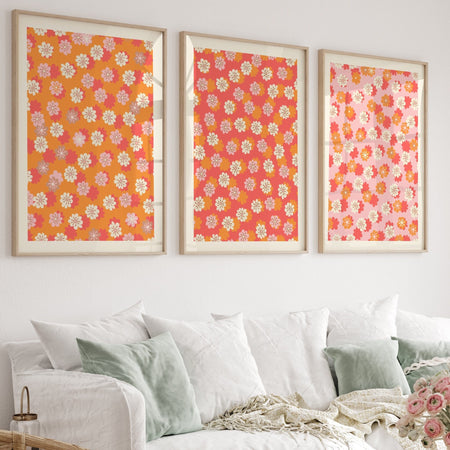 Pink Orange Flower Market Digital Download, 70s Style Poster, 60s Flower Print, Orange Pink Decor, Dorm Room Wall Art, Printable set of 3 $12.00