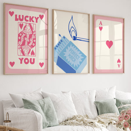 Trendy Retro Wall Art Set of 18, Retro Trendy Aesthetic Print,Lucky You Pink and Blue Sets,Trendy Wall Decor,Funny Art, Minimalist, Digital $15.50