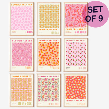 Pink orange flower market digital download, 70s style poster, 60s flower print, orange pink decor, dork room wall art, printable set of 9 $15.00