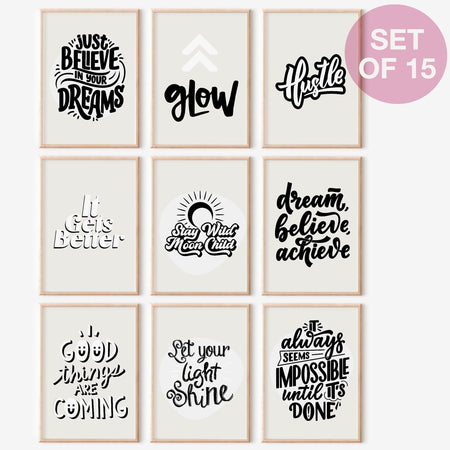 Trendy retro wall art set of 15,retro trendy aesthetic print,lucky you poster,black and beige poster,trendy wall art,funny art, digital art $15.00
