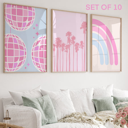 Trendy Retro Wall Art Set of 10,Retro Trendy Aesthetic Print,Lucky You Poster,Pink Print,Trendy Wall Art,Funny Art, Minimalist, Digital Art $14.00
