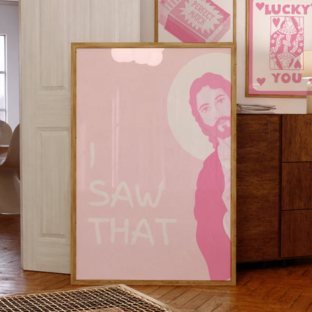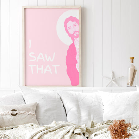 Peeking Jesus - I Saw that, Digital Download, Funny Gift for Christian, Minimalist Pink Dorm Decor $8.50