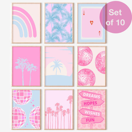 Trendy retro wall art set of 10,retro trendy aesthetic print,lucky you poster,pink print,trendy wall art,funny art, minimalist, digital art $15.50
