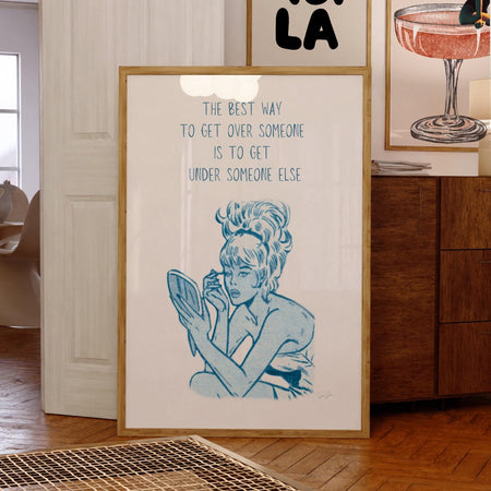 The best way to get over him,retro poster,blue wall decor,breakup gift,digital download,girly dorm room art,divorce party poster $10.00