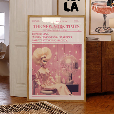 Trendy Newspaper Print, Hairdresser Wall Art, Preppy Vintage Wall Decor, Funny Dorm decor, Bar Cart Wall Art. Retro Doll, Funny Printable $10.00
