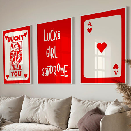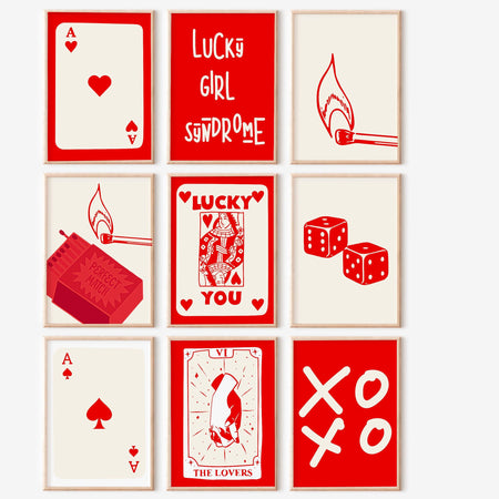 Trendy retro wall art set of 12,retro trendy aesthetic print,lucky you poster,red print,trendy wall art,funny art, minimalist, digital art $15.00