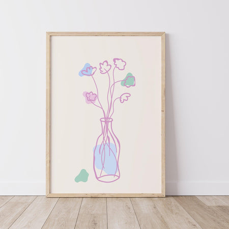 Bouquet of flowers floral abstract digital download girls pastel colors bedroom dorm decor gift idea cute minimalist wall art 1 print $10.00