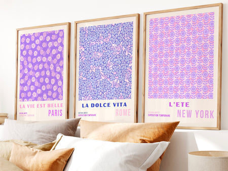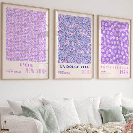 Pink Blue Wall Art Abstract Digital Download Printable Set of 3 Cute Poster 60s Flower Print Purple Pink Decor Dorm Room Wall Art Printable $9.00