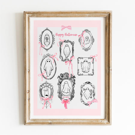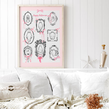 Vintage Antique Aesthetic Cute Ghost Halloween Decor Pink Black Minamalist Poster Digital Print Coquette Bow Wall Art Retro Prints Printable $8.00