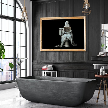 The Smell of Death Ghost on the toilet dark academia scary bathroom print gallery black white landscape poster digital download set of 9 $18.00