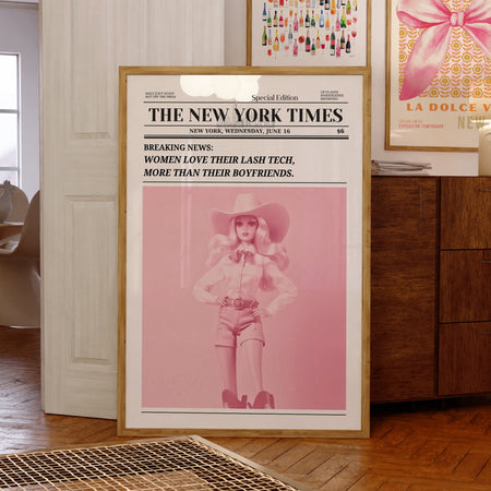 Lash Tech Trendy Newspaper Print Wall Art Pink Girly Preppy Vintage Wall Decor Funny Dorm decor Bar Cart Wallart Salon Decor Funny Printable $10.00