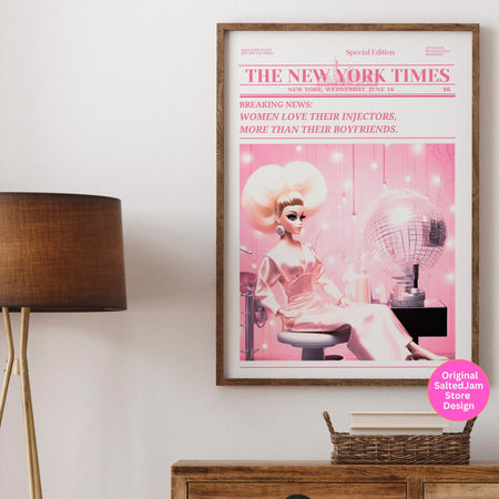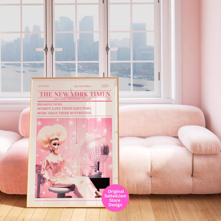 Trendy Newspaper Print Injector Beautician Wall Art Preppy Vintage Wall Decor, Funny Dorm decor Bar Cart Art Salon Decor Funny Printable $10.00