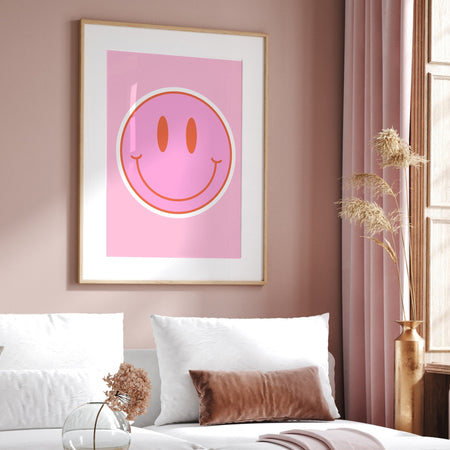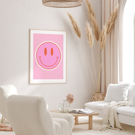 Retro Trendy Aesthetic Wall Art, Trendy Retro Wall Print | Colorful Boho Wall Art | Pink and Orange Poster | Modern Retro Dorm Decor, Smiley $9.00