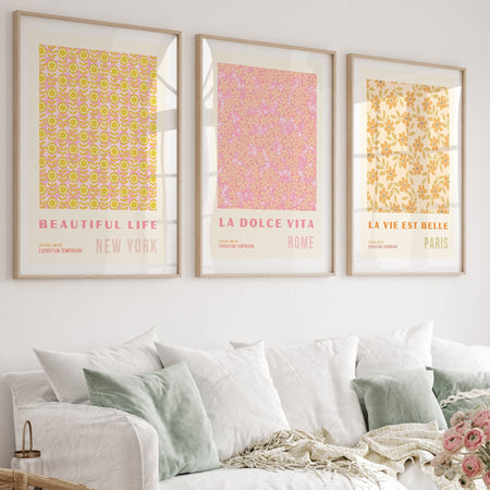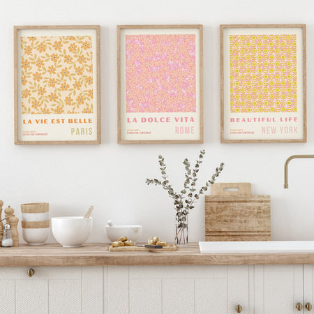 Pink Orange Flower Market Digital Download, 70s Style Poster, 60s Flower Print, Orange Pink Decor, Dork Room Wall Art, Printable set of 3 $17.00