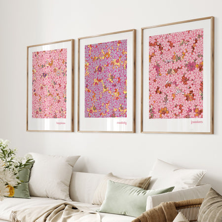 Happiness Creativity Freedom, Orange Pink Flower Market Digital Download, Orange Pink Decor, Dork Room Wall Art, Printable set of 3, Dorm $17.00