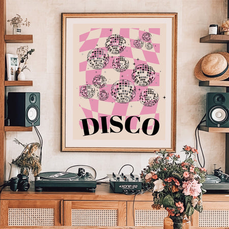 Trendy Retro Disco Ball Poster | Retro Print | Preppy Poster | Disco Poster | Trendy Retro | Disco Ball Decor | Pink prints | Minimalist $9.50
