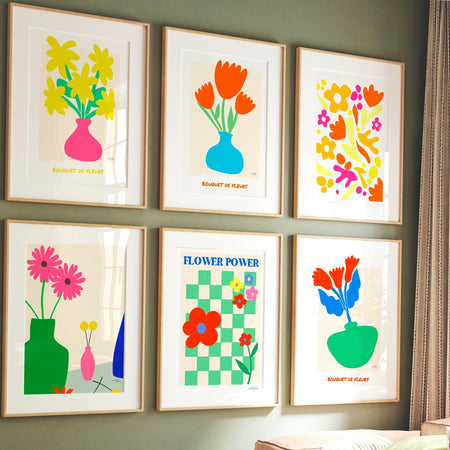 Trendy Retro Set of 6 Flower Market Prints Digital Art Download | Colorful Gallery Wall Flower Exhibition Print Preppy poster, printable $17.00