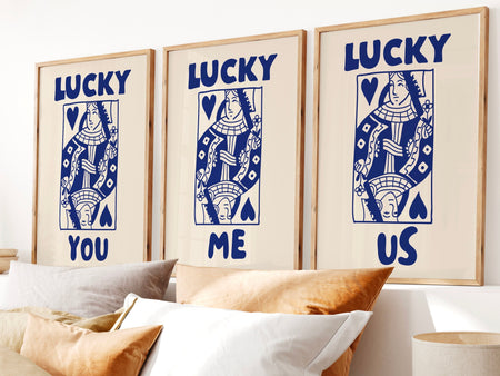 Trendy Retro Wall Art Set of 3, Retro Trendy Aesthetic Print,Lucky You Poster,Blue Print, Trendy Wall Art,Funny Art, Minimalist, Digital Art $17.00