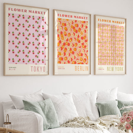 Pink Orange Flower Market Digital Download, 70s Style Poster, 60s Flower Print, Orange Pink Decor, Dork Room Wall Art, Printable set of 9 $14.00