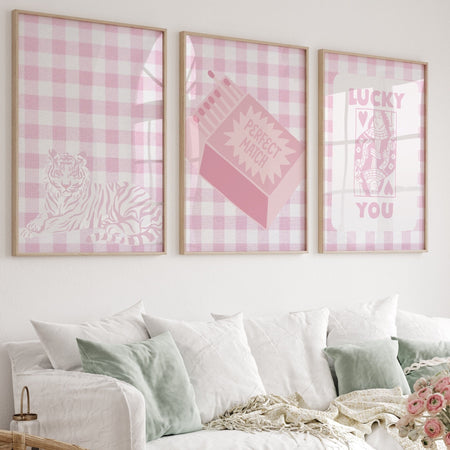 Trendy Retro Wall Art Set of 3,Retro Trendy Aesthetic Print,Lucky You Poster,Pink Print,Trendy Wall Art,Funny Art, Minimalist, Digital Art $17.00