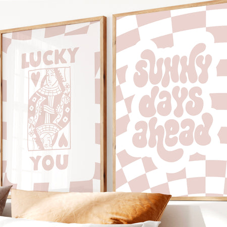 Trendy Retro Wall Art Set of 2, Retro Trendy Aesthetic Print,Lucky You Poster,Beige Print,Trendy Wall Art,Funny Art, Minimalist Digital Art $15.50