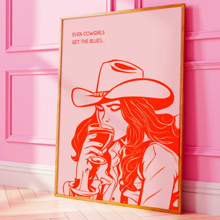 Even Cowgirls Get The Blues Cowgirl Pink Print Retro Trendy Wall Decor Orange Pink Dorm Room Decor Funny Western Digital Art $12.00