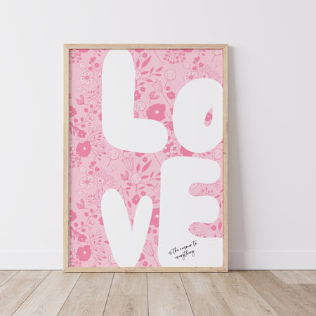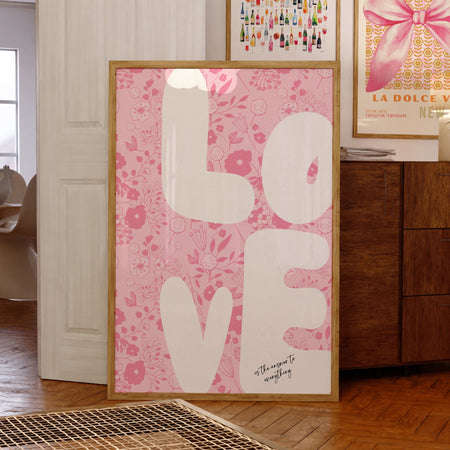 Love Pink Poster Trendy Typography Wall Art Digital Artwork Printable Floral Girly Dorm Nursery Decor Funky 70s Retro Download 1 Print $8.50