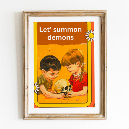 Let's Summon Demons Vintage Halloween Skull Retro Orange Wall Art Print unique fun halloween sarcastic original unique digital art download $8.00