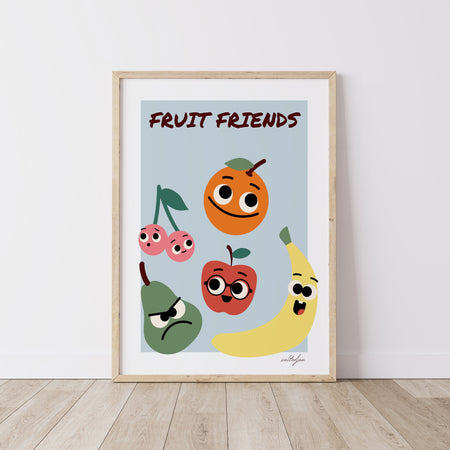 Fruit Friends Art Print, Kids Room Decor, Unique Nursery Decor, Kitchen Wall Art, Playroom Print, Kawaii Fruit Art $9.50