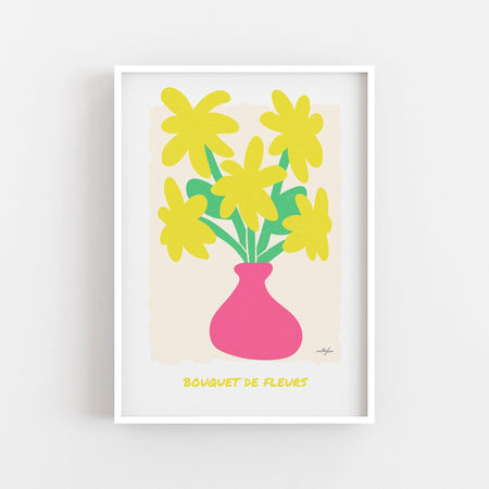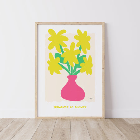 Colourful Flower Poster Print, Yellow Flower Bouquet Wall Art, Modern Fine Art Giclée Poster from $46.50