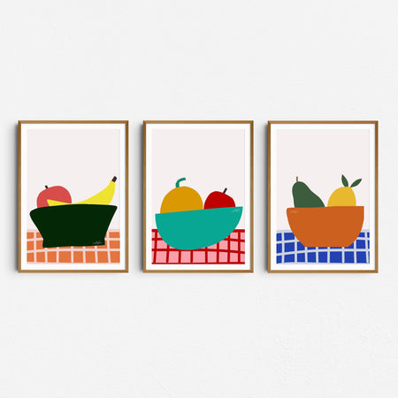 Set of 3 Fruit Art Prints, Orange Pink Blue Poster Kit, Girls Room Nursery Prints, Kitchen Artwork Set of Prints, Collage Wall Set $12.00