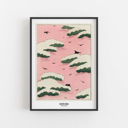Pink sky illustration from Bijutsu Sekai (1893-1896) by Watanabe Seitei, Traditional Japanese illustrations, 50x70 cm, Portrait / Vertical from $43.00