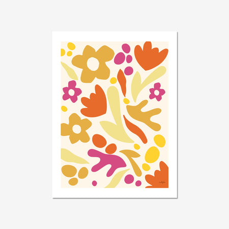 Orange Blue Pink Abstract Flower Print Art Poster, Retro Flower Print Poster, Floral Print, Orange Blue Pink Decor, Flower Poster from $43.00