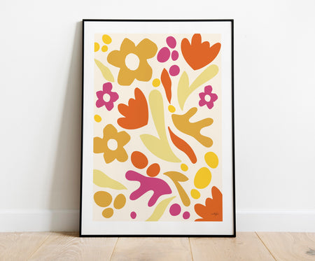 Orange Flower Market Framed Print, 70s Style Poster, 60s Flower Print, Pink Orange Decor, Boho Room Wall Art, Orange Boho Poster from $43.00