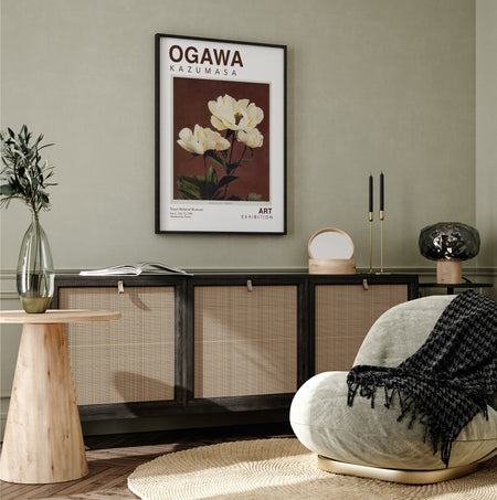 Ogawa Kazumasa Peony Art Exhibition Print Poster, Brown Floral Art Print, Vintage Japanese Photography Wall Art, Peony Poster, Modern Art from $43.00