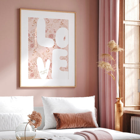 Love Pink Poster Trendy Typography Wall Art Digital Artwork Printable Floral Girly Dorm Nursery Decor Funky 70s Retro Download 1 Print $8.50