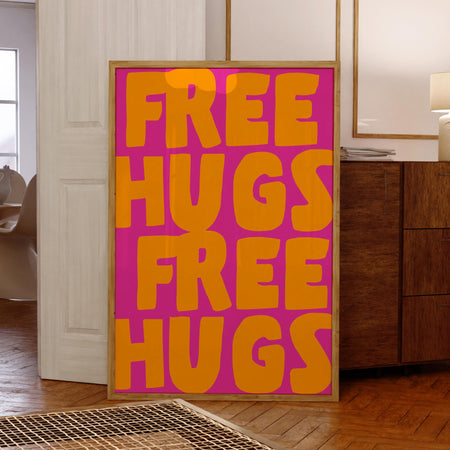 Free hugs pink orange print unique poster, funky 70s pink wall art, digital artwork,printable, girly dorm room trendy retro digital download $10.50