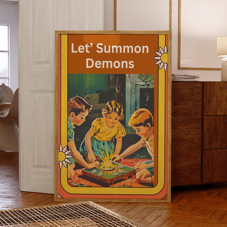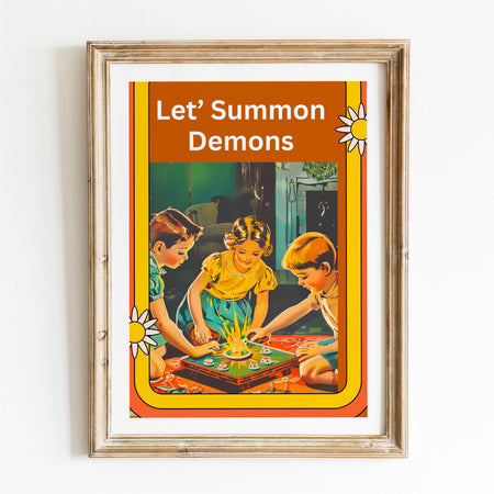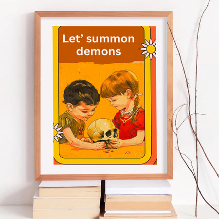 Let's Summon Demons Vintage Halloween Skull Retro Orange Wall Art Print unique fun halloween sarcastic original unique digital art download $8.00